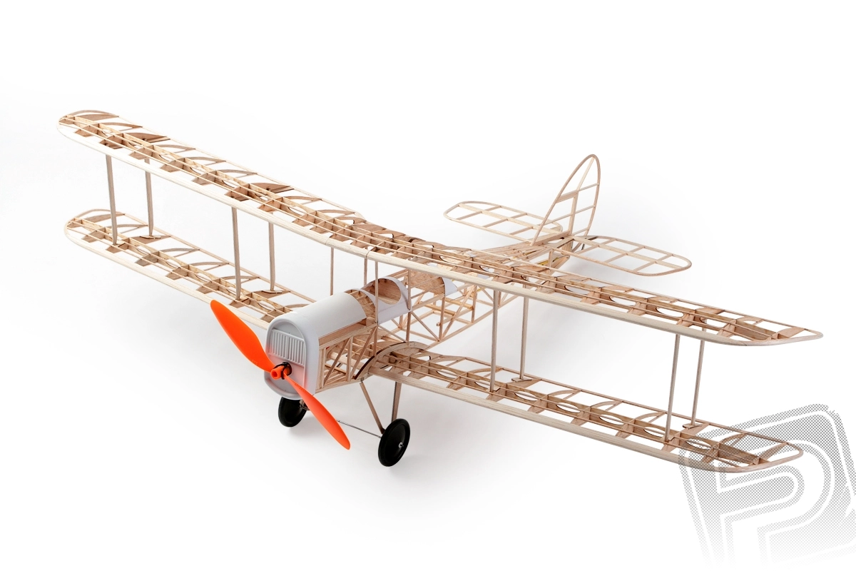 Stavebnice RC polomakety britského lehkého bombardovacího dvojplošníku určená pro pohon elektromotorem. Model je jednoduché klasické celobalsové konstrukce v rozsypu s laserem vyřezávanými dřevěnými díly, maketovými doplňky z vakuově tvářeného plastu, plastovými díly zhotovenými vstřikovým lisováním a z kovu. Trup je konstruován běžnou minimaketářskou technologií z bočnic slepených z balsových nosníků, které spojíte polopřepážkami a příčkami do příhradového rámu. Výsledné tvary získáte po nalepení několika dodatečných podélníků. Křídla jsou klasické konstrukce z nosníků a žeber, ocasní plochy z balsových lišt a laserem vyřezávaných dílů. Drobnou "vychytávkou" je zhotovování obvodových dílů ocasních ploch a koncových oblouků křídel z balsových pásků laminovaných za mokra. Získáte tak snadno překvapivě pevné a velmi lehké díly - a bez použití uhlíku! Výkresy potřebných šablon opět najdete v návodu. Celý model můžete potáhnout papírem dodávaným ve stavebnici nebo vhodnou lehkou nažehlovací fólií s malou smrštivostí, jako je Airspan nebo Litespan.