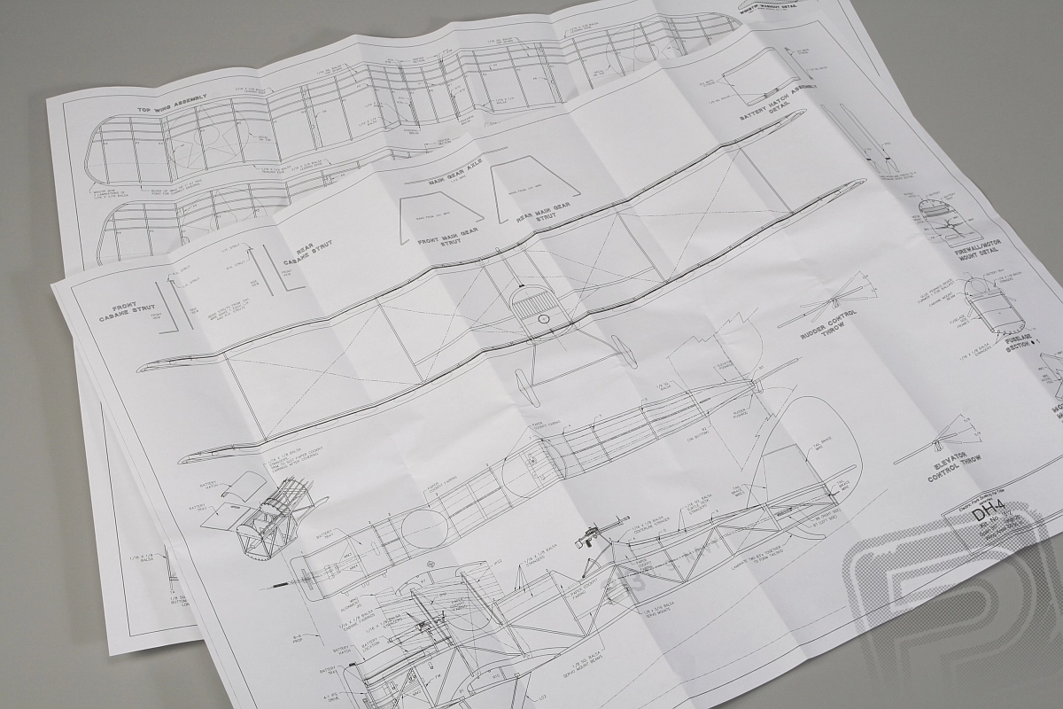 DH-4 je konstruován pro pohon malým stejnosměrným motorem s převodovkou - např. pohonnou jednotkou GWS, která je zakreslena na plánu. V dnešní době nejspíše zvolíte malý střídavý motor - v takovém případě budete muset překonstruovat motorové lože (doplňte novou motorovou přepážku z 2 mm březové překližky), ale to by nemělo představovat závažnější problém. Pro pohodové létání stačí elektromotor třídy AXI 2208 a Li-poly dvoučlánek 800 mAh. "Namotorování" doporučujeme nepřehánět - je to park-flyer, ne raketa.