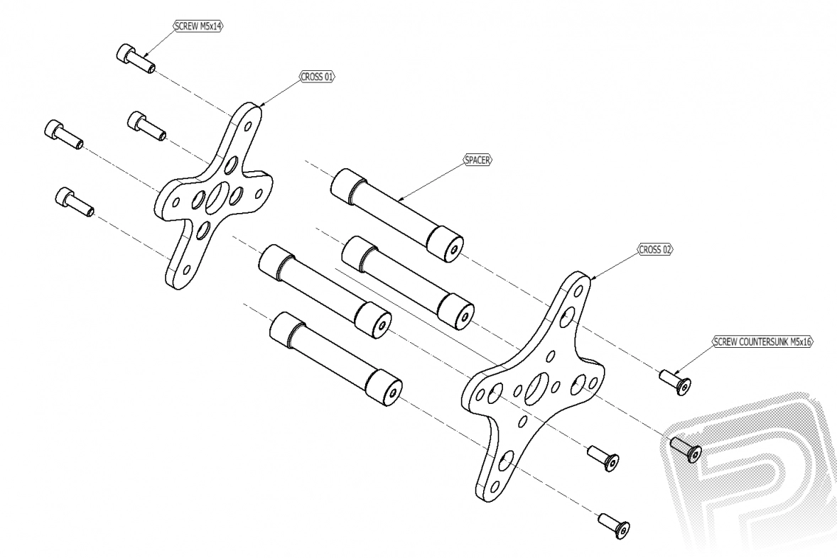Kvalitní distanční sloupky mezi kříže pro prodloužení uložení motoru.