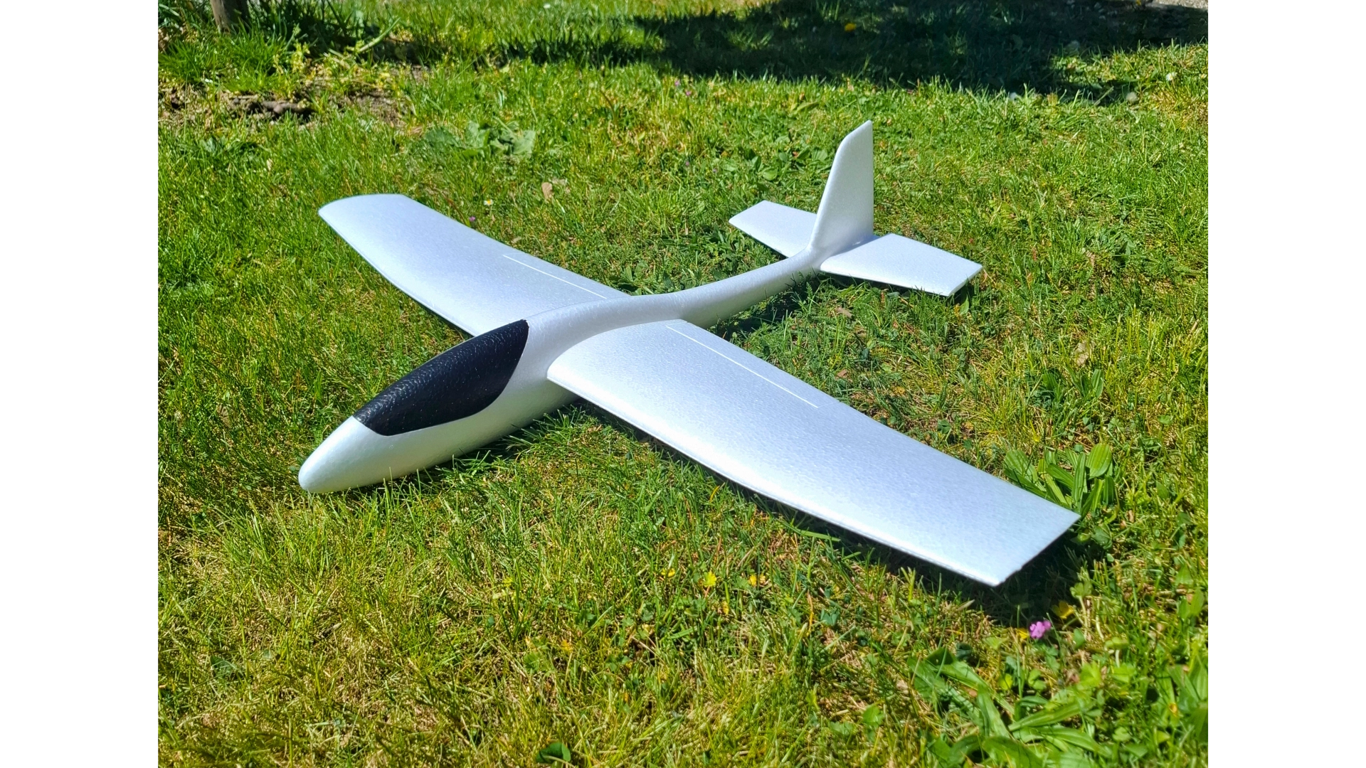 Sestavení je maximálně jednoduché a zvládnete ho během jediné minuty – bez lepidla a bez nářadí. Stačí zasunout křídlo a vodorovnou ocasní plochu do připravených drážek v trupu a můžete jít rovnou létat.