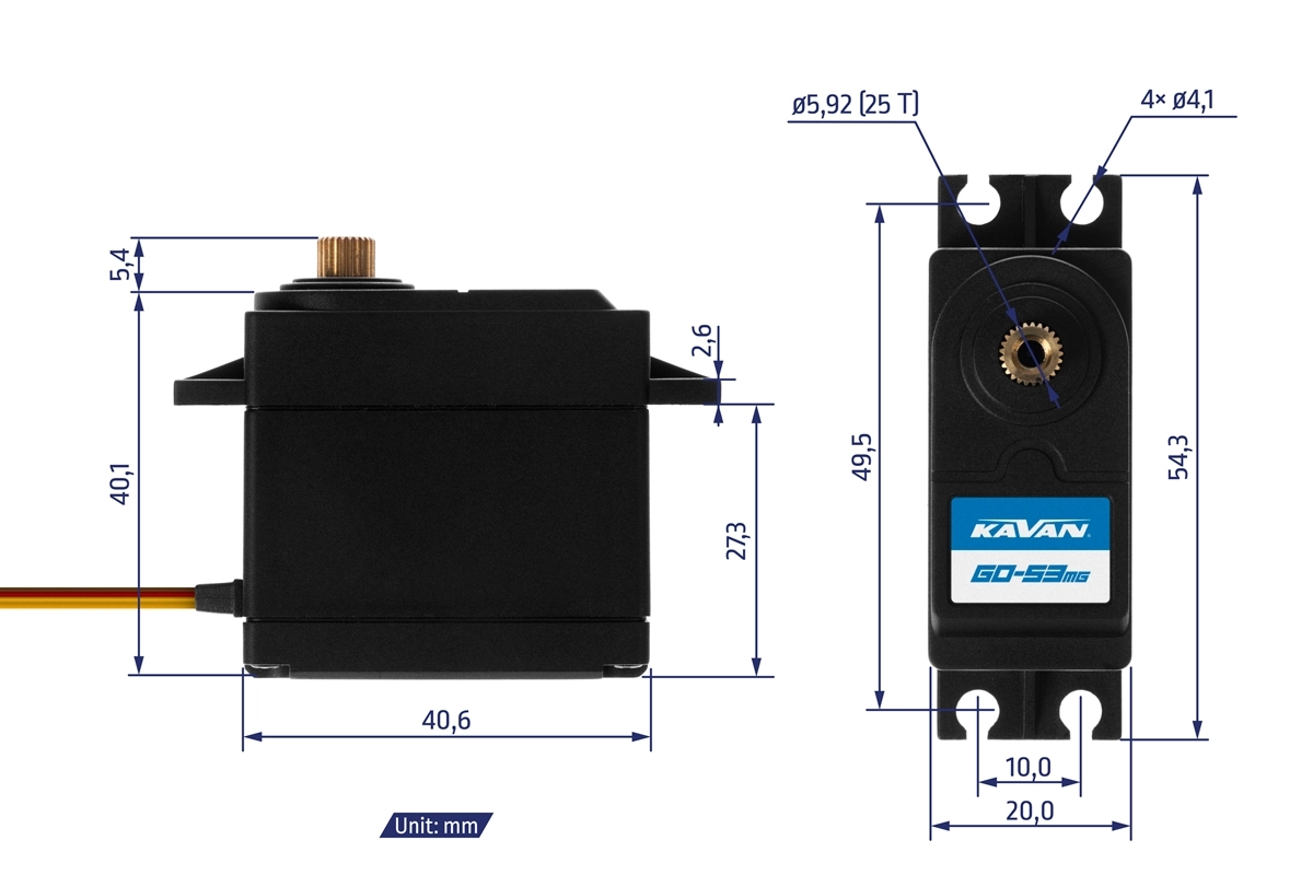 Silné standardní digitální servo 55g s kovovými převody a rozsahem napájecího napětí 4,8-6,0V, 2xBB, ideální pro modely letadel, RC auta 1:10, RC lodi apod. Tah 13kg.cm, rychlost 0,31s/60°při 4,8V, tah 15kg.cm, rychlost 0,28s/60° při 6,0V. Rozměry 40,8x20,1x38mm, hmotnost 55g.