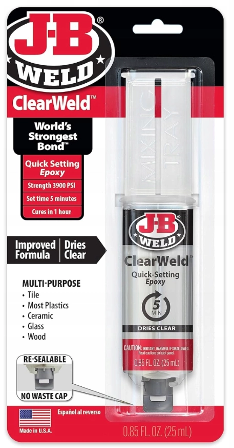 ClearWeld™ je rychle tuhnoucí, víceúčelové dvousložkové epoxidové lepidlo, které zajišťuje pevné a trvalé spojení na většině povrchů. Neúčinější je při lepení dlaždic, většiny plastů, keramiky, skla, dřeva a kovu.