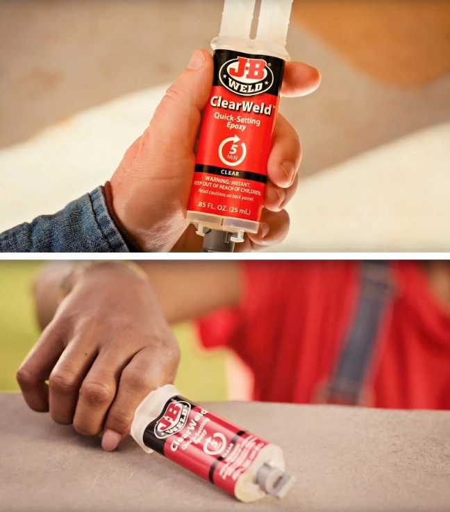 ClearWeld™ je rychle tuhnoucí, víceúčelové dvousložkové epoxidové lepidlo, které zajišťuje pevné a trvalé spojení na většině povrchů.