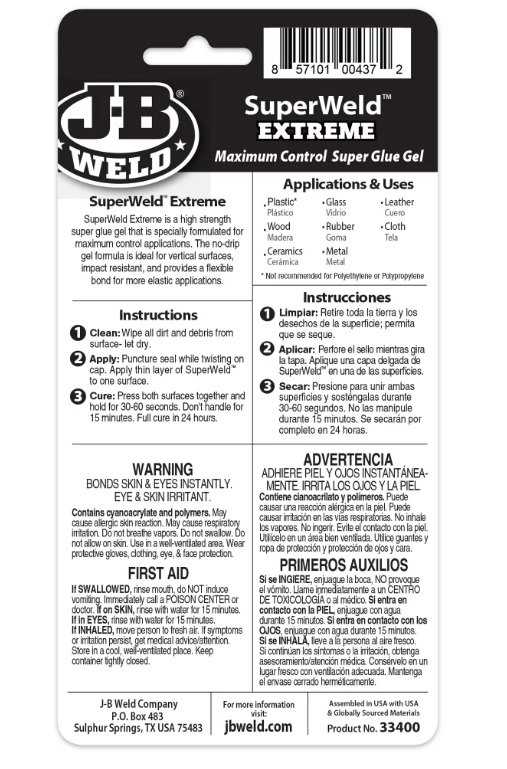 SuperWeld™ Extreme je speciálně vyvinuté gelové superlepidlo, které poskytuje silný, pružný spoj a vytvrzuje do 24 hodin.