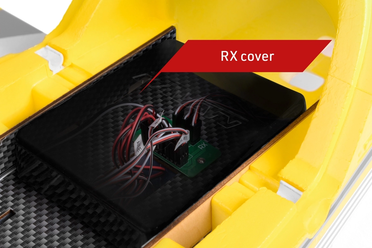 Trup modelu je zhotoven z vysoce odolného pěnového EPO (extrudovaného polyolefinu) s důkladnými vnitřními uhlíkovými výztuhami. V přídi je nainstalován střídavý elektromotor C3548-800 s třílistou vrtulí 10x6“ a regulátorem KAVAN R-50SB s výkonným BEC stabilizátorem napájení potřebným pro napájení 7 serv na palubě. Kryt kabiny je odnímatelný, upevňuje se pomocí čepu vpředu a dvou mechanických západek vzadu. V prostoru kabiny najdete dostatek prostoru pro pohonný akumulátor a přijímač.