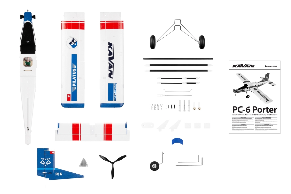 Pro napájení budete potřebovat LiPo čtyřčlánek s kapacitou 2600-3300 mAh se zatížitelností aspoň 30C. Konkrétní typ volte tak, aby vám bez dalšího dovažování co nejlépe vycházela správná poloha těžiště.Pro ovládání modelu v nouzi vystačíte i se šestikanálovou počítačovou RC soupravou bez speciálních funkcí – v základním provedení jsou křidélka, klapky, směrovka a výškovka zapojeny pomocí zapojovací desky nainstalované v prostoru kabiny vždy jen do jednoho kanálu. Deska také zajišťuje napájení LED světel. Ideální je samozřejmě použití aspoň sedmikanálové počítačové RC soupravy umožňující nezávislé ovládání křidélek a klapek dvěma servy, což dnes umí i cenově dostupný Radiolink AT9S nebo AT10II nebo Futaba T6K či T10J. V takovém případě je nutno serva křidélek a klapek připojit samostatně. V návodu samozřejmě nechybí důkladná tabulka s prověřeným výchozím nastavením výchylek kormidel, abyste Portera snadno připravili k letu, i když to třeba bude váš první model s „plnou mechanizací“ křídla.