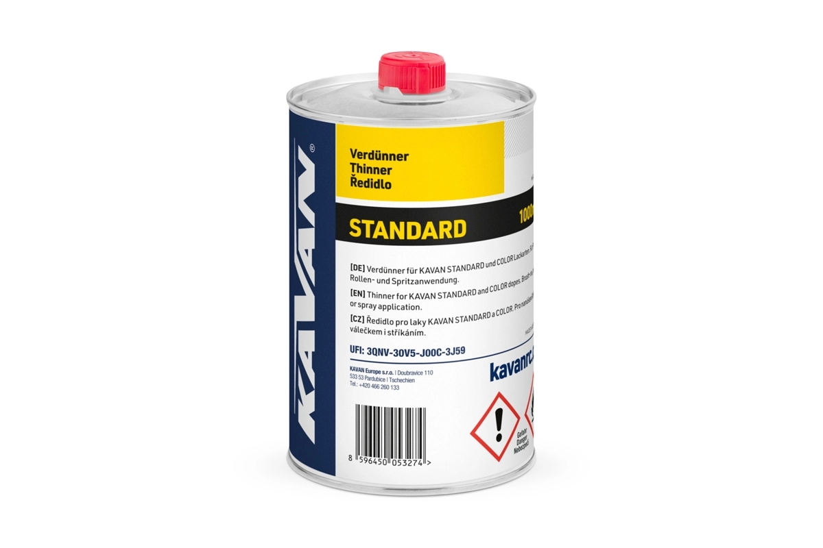 Ředidlo pro laky řady KAVAN STANDARD a COLOR - speciálně připravená receptura zaručující dosažení optimálních vlastností laků řad STANDARD a COLOR.