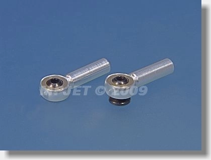 Celokovové kulové čepy typ V3 (duralové oko se závitem M3, ocelový černěný nitrocementovaný čep s krčkem, vnějším průměrem 5 mm a dírou pro šroub M2, sedlo z mosazi, provozní vůle automaticky vymezována kroužkem z pružinové oceli). Pro přesné spojení a zcela volný pohyb táhla ve všech rovinách. Pro montáž je vhodné použít imbus šroub M2x12.
