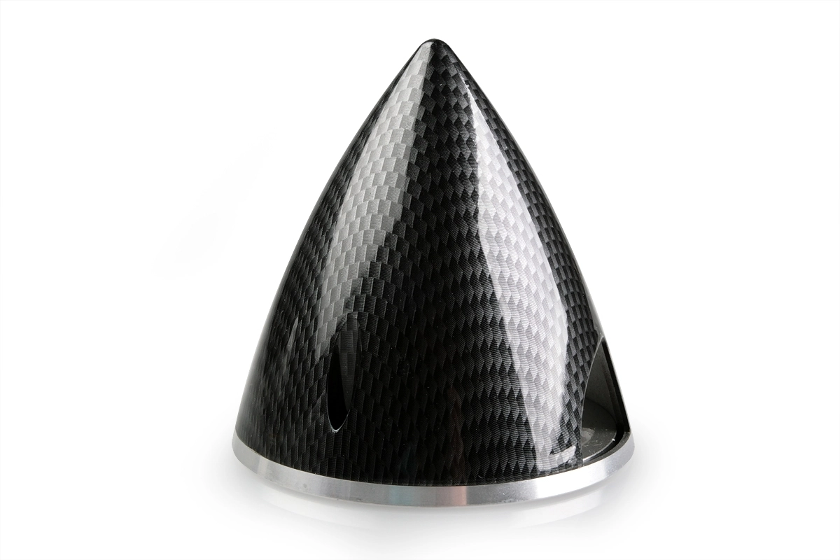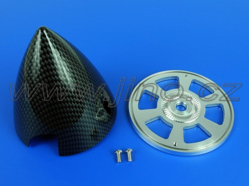 Plastový kužel (imitace uhlíkové tkaniny) pro dvoulistou vrtuli s duralovou zadní deskou.
