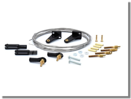 Určeno k přenosu sil na kormidla pomocí tenkého ocelového lanka místo běžného táhla nebo bowdenu. Souprava obsahuje nerezové lanko pr.0,5 (2x2m), ovládací páky s ložiskem, vidličky s kovovým čepem, spojky lanka, kulové čepy M2 krátké a další potřebný materiál. K dispozici v barvě černé