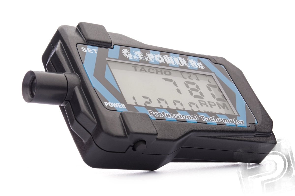Miniaturní optický otáčkoměr pro měření otáček vrtulí s 2-9 listy s LCD displejem s vypínatelným podsvícením. Měří okamžité otáčky, zaznenává maximální naměřenou hodnotu.