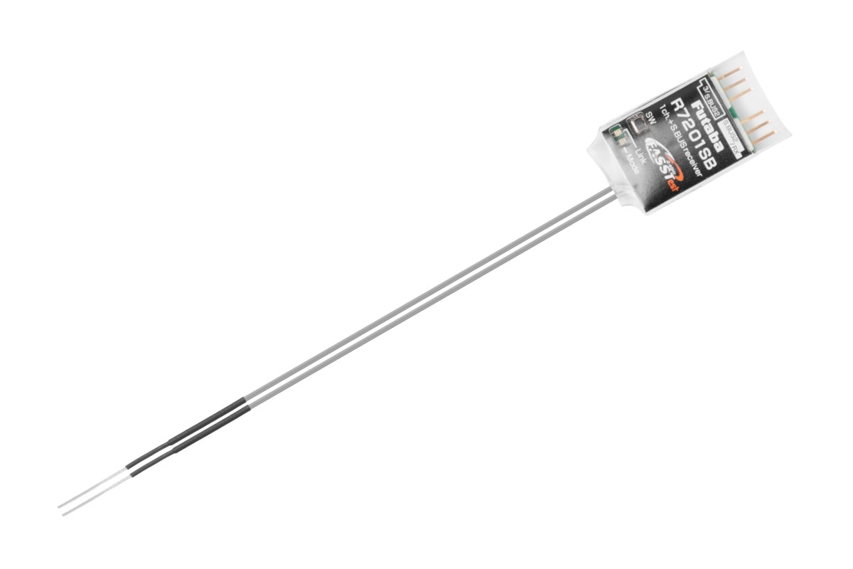 Malý a velmi lehký telemetrický přijímač Futaba přenosového systému FASSTest 2.4GHz s dvojicí diverzitních antén s plným dosahem. Je určen pro předevšímpoužití v dronech a jiných modelech používající řídící jednotky komnikující po sběrnicích S.BUS nebo S.BUS2.; díky kompaktním rozměrům a velmi nízké hmotnosti je vhodný i pro malé modely letadel s S.BUS/S.BUS2 servy a výborně se hodí jako záložní přijímač v dvoupřijímačovém provozu s jinými FASSTest přijímači. Volitelné kanálové režimy R7201SB umožňují jedné zásuvce fungovat jako klasický PWM kanálový výstup (kanál 3)/S.BUS2 nebo S.BUS port; druhá zásuvka má funkci S.BUS2 portu nebo slouží pro připojení druhého přijímače v dvoupřijímačovém provozu. S.BUS2 port pro obousměrnou komunikaci umožňuje připojení S.BUS2 serv, telemetrických čidel a dalších kompatibilních zařízení. Provozní stavy přijímače jsou signalizovány LED indikátorem.