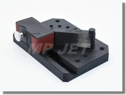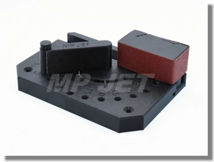 Přípravek pro jednodušší broušení úhlů. Upnutí brusného papíru do tvarové drážky a pomocí svěrného bloku (brusný papír není součástí balení).
