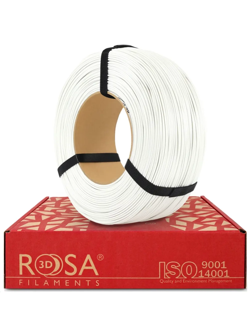 Filament 3D ReFill ASA White (akrylonitril-styren-akrylát) od ROSA3D je materiál odolný vůči UV záření, vlhkosti a vysokým teplotám, díky čemuž je ideální pro venkovní použití. Oproti ABS se tiskne snadněji a efektivněji – má menší smrštění a při tisku uvolňuje méně zápachu.