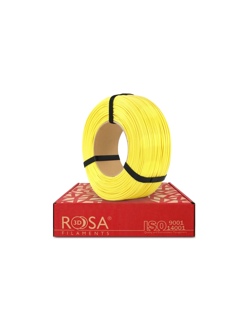 Filament 3D ReFill ASA Yellow (akrylonitril-styren-akrylát) od ROSA3D je materiál odolný vůči UV záření, vlhkosti a vysokým teplotám, díky čemuž je ideální pro venkovní použití. Oproti ABS se tiskne snadněji a efektivněji – má menší smrštění a při tisku uvolňuje méně zápachu.