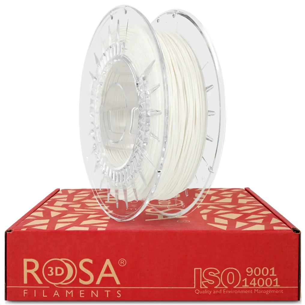 ROSA FLEX 85A White je pružný TPU filament pro 3D tisk s vysokou odolností, ideální pro funkční díly jako těsnění, kryty, tlumicí prvky nebo ochranné komponenty.