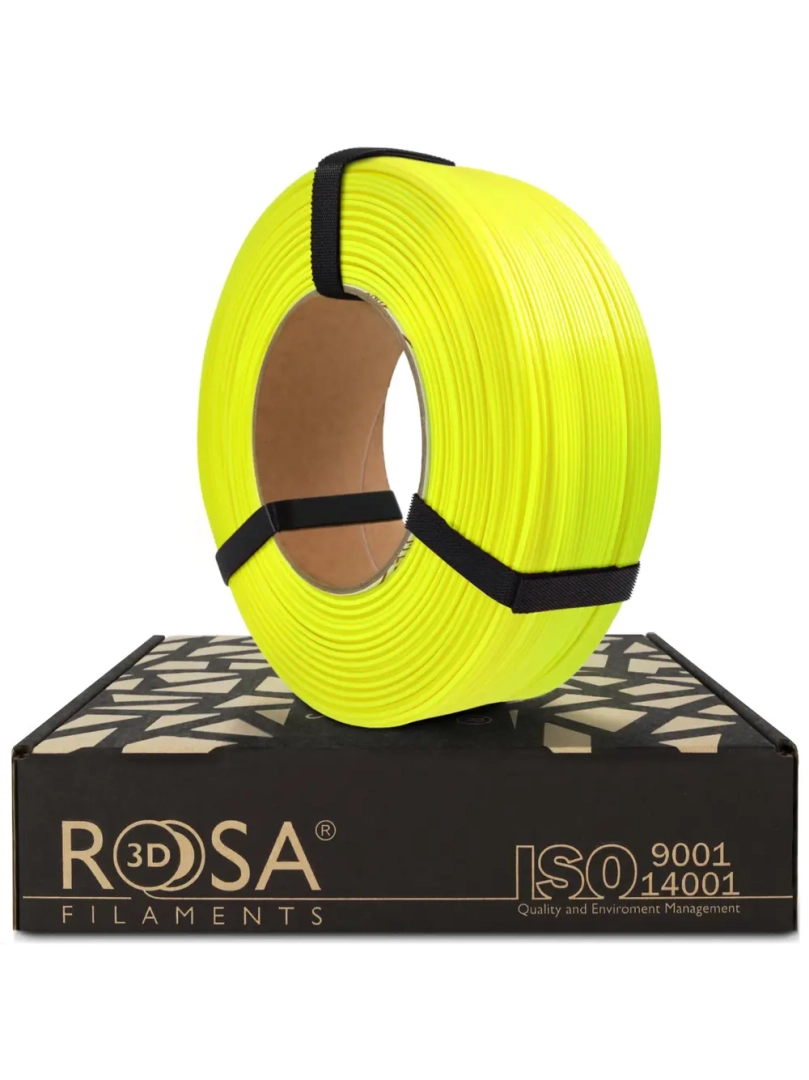 Filament 3D ReFill PET -G Standard HS Neon Yellow (modifikovaný polyethylentereftalátglykolem) je 3D tiskový materiál známý pro snadnou tiskovou schopnost, vysokou průhlednost a neutrální zápach.