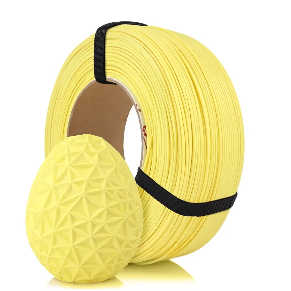 PLA Pastel Yellow ReFill je snadno tisknutelný matný filament pro 3D tisk v jemném pastelově žlutém odstínu, ideální pro stínidla, světelné difuzory a dekorativní objekty.
