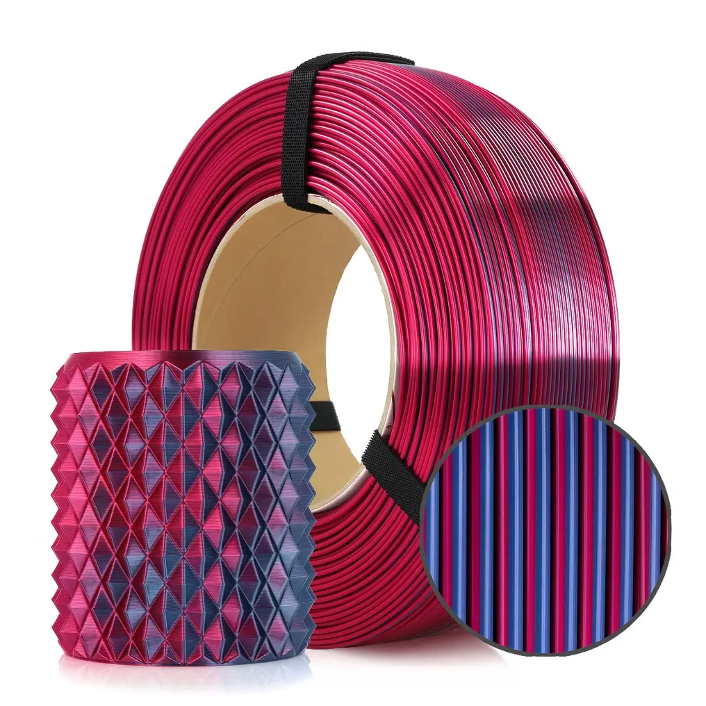 PLA Magic Silk Midnight City ReFill je lesklý filament pro 3D tisk s dvoubarevným efektem (modrá a červená), který vytváří působivé barevné přechody a zvýrazní detaily každého modelu.
