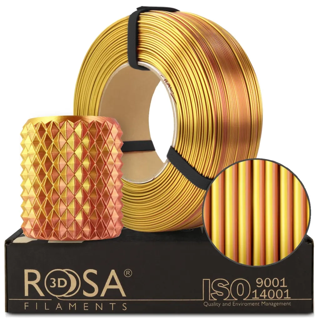 PLA Magic Silk Gold-Copper ReFill je lesklý filament pro 3D tisk s dvoubarevným efektem (zlatá a měděná), který vytváří působivé barevné přechody a zvýrazní detaily každého modelu.