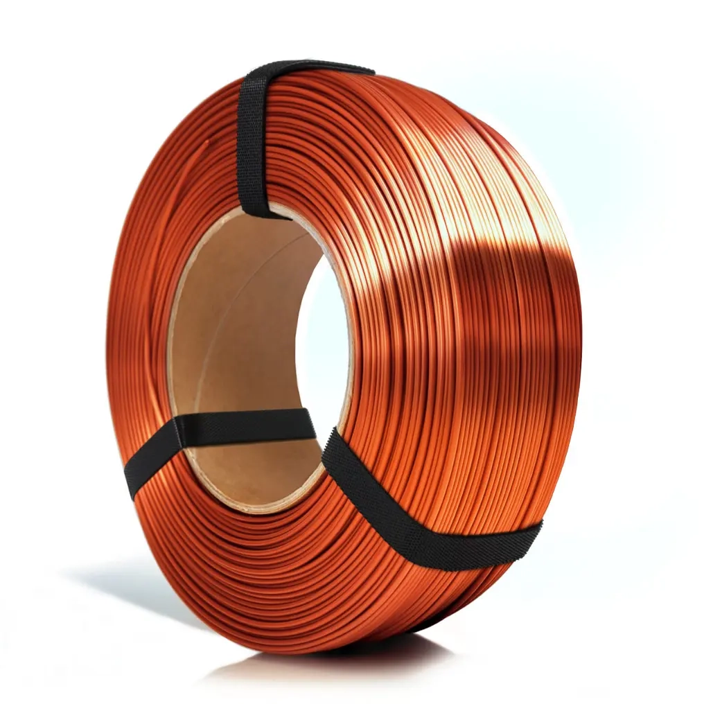 Filament 3D ReFill PLA-Silk Copper je odolný a uživatelsky přívětivý materiál pro 3D tisk, který zaujme výraznou měděnou barvou a oslnivým lesklým (silk) povrchem. Výtisky z tohoto filamentu se vyznačují jemným třpytem a velmi efektní, hladkou povrchovou úpravou, díky čemuž působí luxusně a výrazně.
