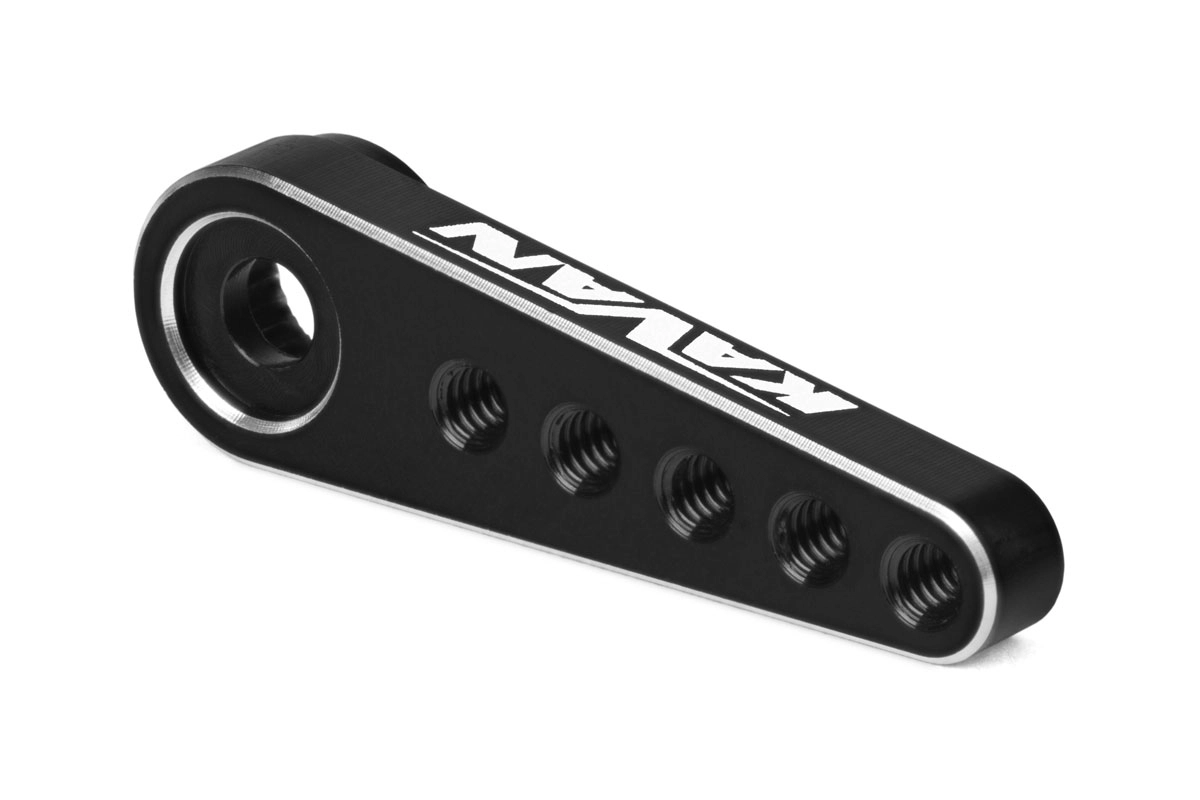 Profesionální servo páka pro serva s výstupním tisícihranem 25zubů s průměrem 4,9mm. Vyrobeno z hliníku se závity M2 pro použití kulových čepů. Vzdálenost otvorů od osy serva: 6,5mm; 9,8mm; 13,1mm; 16,4mm; 19,6mm.