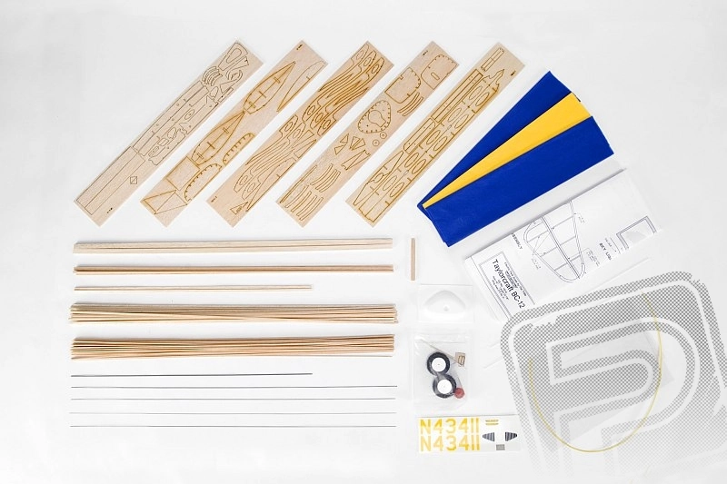 Stavebnice obsahuje: balsové laserem vyřezávané díly, balsové nosníky, vakuově lisované díly (kryt motoru...), čirou plastovou fólii na "zasklení" kabiny, ocelovou strunu na podvozek a další drobné díly, lehká pěnová kola, barevný potahový papír, aršík samolepek, stavební plán.