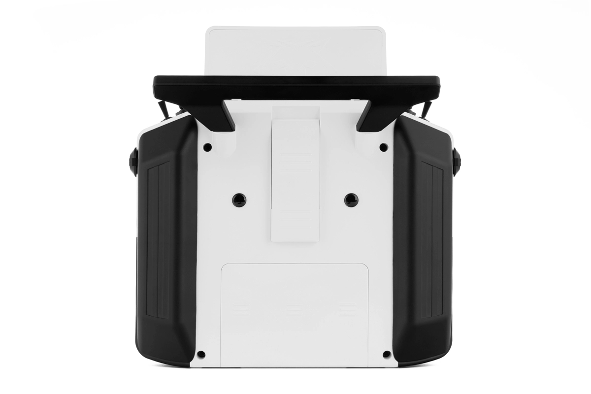 Tělo vysílače je robustní a dokonale padnoucí do ruky. Pogumované gripy na bocích a zadní straně vysílače poskytují pevný pohodlný a jistý úchop. Odtud bez obtíží dosáhnete na všechny ovladače. Gimbaly se nachází těsně u okrajů vysílače. Na komfortní držení vysílače tedy nepotřebujete ani pult. Pro maximální ergonomii lze dokoupit i dlouhé tuningové páky s přepínači.